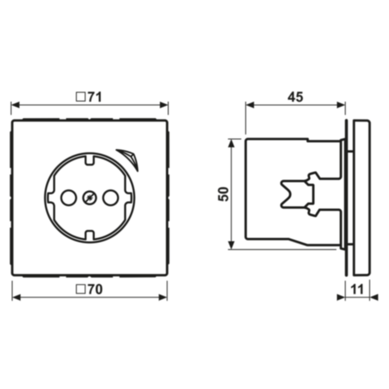 JUNG HOME Schutzkontakt® Steckdose Energy, gris moyen mit integriertem erhöhten Berührungsschutz (Safety Plus) mit Schraubklemmen für starre und flexible Leiter bis 2,5 mm2 Verbindungsklemmen nach DIN VDE 0620 Tragring, Krallen und Krallenschrauben sind über eine Erdungsschiene in die Schutzmaßnahme eingebunden. Bestimmungsgemäßer Gebrauch Manuelles oder automatisches Schalten von Beleuchtung und haushaltsüblichen Geräten Leistungs- (W) und Energiemessung (kWh) der angeschlossenen Geräte Drahtlose Verknüpfung mit Geräten des JUNG HOME Systems Einsatz im trockenen Innenbereich Montage in Gerätedose mit Abmessungen nach DIN 49073 Tiefe der Gerätedose (Innenmaß): min. 53 mm   Produkteigenschaften Inbetriebnahme und Bedienung über JUNG HOME App mit mobilem Endgerät (Smartphone oder Tablet) über Bluetooth® Taste zum Schalten Mehrfarbige Statusanzeige mit optionalem Nachtmodus Sperren der lokalen Bedienung Bis zu 16 Zeitprogramme Einbindung der Last in Bereiche (Gruppen), Zentralfunktionen und Szenen Automatikfunktionen aktivieren/deaktivieren über JUNG HOME App Automatische Datum- und Uhrzeitaktualisierung bei Verbindung mit Smartphone Integrierter Schaltaktor mit 16 A Leistungsmessung von 0,1 bis 3680 Watt und Energiemessung (kWh) Aufzeichnung des Energieverlaufes letzte 24 Stunden und letzte 31 Tage (Charting) Betriebsstundenzähler, Zeitraum der Energiemessung Power-Save-Funktion (Abschalten von Standby-Verbrauchern) Master-Slave-Funktion (abhängig vom angeschlossenen Verbraucher einen drahtlos verknüpften Verbraucher einschalten) Überstrom-Schutzabschaltung Bluetooth® SIG Mesh für voll verschlüsselte drahtlose Kommunikation und Repeaterfunktion Updatefähig über JUNG HOME App Zukünftig per Update verfügbar: (Hinweise zu Updates und Terminen finden sie unter jung.group/junghome) Sperr- und Zwangsführung: Dauer-EIN/AUS oder für feste Zeit EIN/AUS Zeitprogramme mit Sonnenauf- bzw. Sonnenuntergang (Astrotimer) Zeitprogramme mit Zufallszeitpunkt Ein-/ Ausschaltverzögerung Eingespeiste Leistung von -0,1 bis -3680 Watt und eingespeiste Energie (kWh) Material: Thermoplast lackiert Maße (B x H): 70 x 70 mm