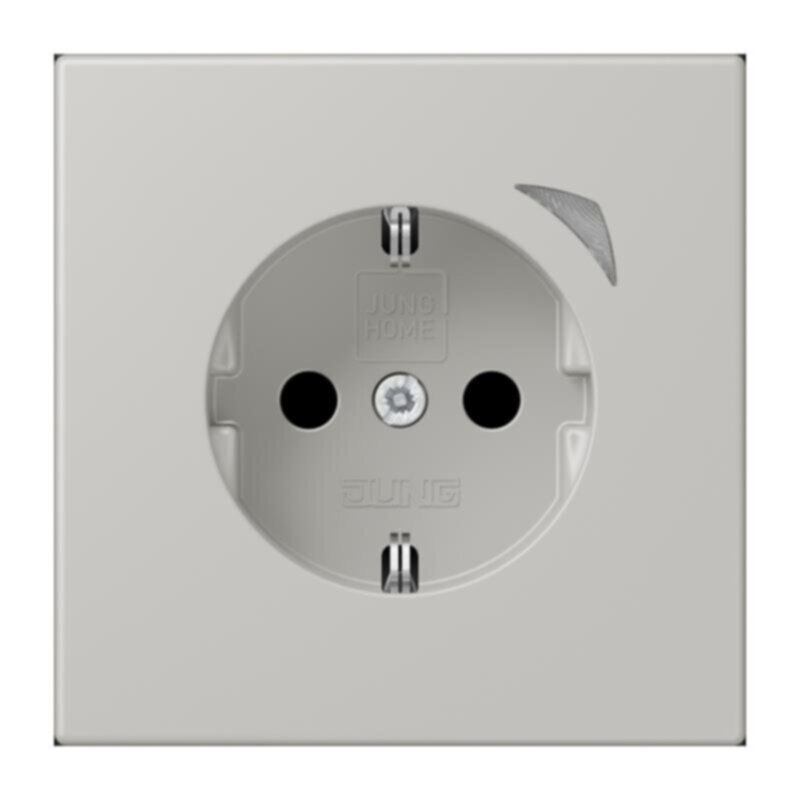 JUNG HOME Schutzkontakt® Steckdose Energy, gris clair 31 mit integriertem erhöhten Berührungsschutz (Safety Plus) mit Schraubklemmen für starre und flexible Leiter bis 2,5 mm2 Verbindungsklemmen nach DIN VDE 0620 Tragring, Krallen und Krallenschrauben sind über eine Erdungsschiene in die Schutzmaßnahme eingebunden. Bestimmungsgemäßer Gebrauch Manuelles oder automatisches Schalten von Beleuchtung und haushaltsüblichen Geräten Leistungs- (W) und Energiemessung (kWh) der angeschlossenen Geräte Drahtlose Verknüpfung mit Geräten des JUNG HOME Systems Einsatz im trockenen Innenbereich Montage in Gerätedose mit Abmessungen nach DIN 49073 Tiefe der Gerätedose (Innenmaß): min. 53 mm   Produkteigenschaften Inbetriebnahme und Bedienung über JUNG HOME App mit mobilem Endgerät (Smartphone oder Tablet) über Bluetooth® Taste zum Schalten Mehrfarbige Statusanzeige mit optionalem Nachtmodus Sperren der lokalen Bedienung Bis zu 16 Zeitprogramme Einbindung der Last in Bereiche (Gruppen), Zentralfunktionen und Szenen Automatikfunktionen aktivieren/deaktivieren über JUNG HOME App Automatische Datum- und Uhrzeitaktualisierung bei Verbindung mit Smartphone Integrierter Schaltaktor mit 16 A Leistungsmessung von 0,1 bis 3680 Watt und Energiemessung (kWh) Aufzeichnung des Energieverlaufes letzte 24 Stunden und letzte 31 Tage (Charting) Betriebsstundenzähler, Zeitraum der Energiemessung Power-Save-Funktion (Abschalten von Standby-Verbrauchern) Master-Slave-Funktion (abhängig vom angeschlossenen Verbraucher einen drahtlos verknüpften Verbraucher einschalten) Überstrom-Schutzabschaltung Bluetooth® SIG Mesh für voll verschlüsselte drahtlose Kommunikation und Repeaterfunktion Updatefähig über JUNG HOME App Zukünftig per Update verfügbar: (Hinweise zu Updates und Terminen finden sie unter jung.group/junghome) Sperr- und Zwangsführung: Dauer-EIN/AUS oder für feste Zeit EIN/AUS Zeitprogramme mit Sonnenauf- bzw. Sonnenuntergang (Astrotimer) Zeitprogramme mit Zufallszeitpunkt Ein-/ Ausschaltverzögerung Eingespeiste Leistung von -0,1 bis -3680 Watt und eingespeiste Energie (kWh) Material: Thermoplast lackiert Maße (B x H): 70 x 70 mm
