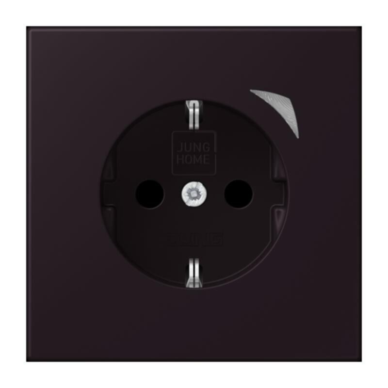 JUNG HOME Schutzkontakt® Steckdose Energy, noir d'ivoire mit integriertem erhöhten Berührungsschutz (Safety Plus) mit Schraubklemmen für starre und flexible Leiter bis 2,5 mm2 Verbindungsklemmen nach DIN VDE 0620 Tragring, Krallen und Krallenschrauben sind über eine Erdungsschiene in die Schutzmaßnahme eingebunden. Bestimmungsgemäßer Gebrauch Manuelles oder automatisches Schalten von Beleuchtung und haushaltsüblichen Geräten Leistungs- (W) und Energiemessung (kWh) der angeschlossenen Geräte Drahtlose Verknüpfung mit Geräten des JUNG HOME Systems Einsatz im trockenen Innenbereich Montage in Gerätedose mit Abmessungen nach DIN 49073 Tiefe der Gerätedose (Innenmaß): min. 53 mm   Produkteigenschaften Inbetriebnahme und Bedienung über JUNG HOME App mit mobilem Endgerät (Smartphone oder Tablet) über Bluetooth® Taste zum Schalten Mehrfarbige Statusanzeige mit optionalem Nachtmodus Sperren der lokalen Bedienung Bis zu 16 Zeitprogramme Einbindung der Last in Bereiche (Gruppen), Zentralfunktionen und Szenen Automatikfunktionen aktivieren/deaktivieren über JUNG HOME App Automatische Datum- und Uhrzeitaktualisierung bei Verbindung mit Smartphone Integrierter Schaltaktor mit 16 A Leistungsmessung von 0,1 bis 3680 Watt und Energiemessung (kWh) Aufzeichnung des Energieverlaufes letzte 24 Stunden und letzte 31 Tage (Charting) Betriebsstundenzähler, Zeitraum der Energiemessung Power-Save-Funktion (Abschalten von Standby-Verbrauchern) Master-Slave-Funktion (abhängig vom angeschlossenen Verbraucher einen drahtlos verknüpften Verbraucher einschalten) Überstrom-Schutzabschaltung Bluetooth® SIG Mesh für voll verschlüsselte drahtlose Kommunikation und Repeaterfunktion Updatefähig über JUNG HOME App Zukünftig per Update verfügbar: (Hinweise zu Updates und Terminen finden sie unter jung.group/junghome) Sperr- und Zwangsführung: Dauer-EIN/AUS oder für feste Zeit EIN/AUS Zeitprogramme mit Sonnenauf- bzw. Sonnenuntergang (Astrotimer) Zeitprogramme mit Zufallszeitpunkt Ein-/ Ausschaltverzögerung Eingespeiste Leistung von -0,1 bis -3680 Watt und eingespeiste Energie (kWh) Material: Thermoplast lackiert Maße (B x H): 70 x 70 mm
