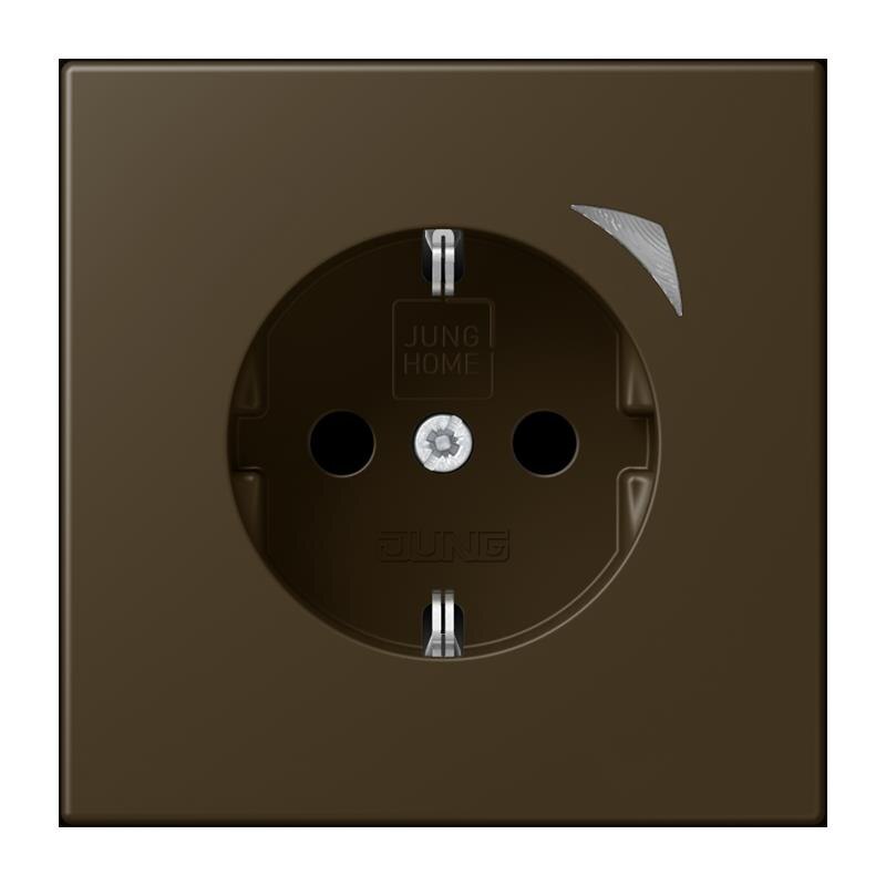 JUNG HOME Schutzkontakt® Steckdose, Messing antik mit integriertem erhöhten Berührungsschutz (Safety Plus) mit Schraubklemmen für starre und flexible Leiter bis 2,5 mm2 Verbindungsklemmen nach DIN VDE 0620 Tragring, Krallen und Krallenschrauben sind über eine Erdungsschiene in die Schutzmaßnahme eingebunden. Bestimmungsgemäßer Gebrauch Manuelles oder automatisches Schalten von Beleuchtung und haushaltsüblichen Geräten Drahtlose Verknüpfung mit Geräten des JUNG HOME Systems Einsatz im trockenen Innenbereich Montage in Gerätedose mit Abmessungen nach DIN 49073 Tiefe der Gerätedose (Innenmaß): min. 53 mm   Produkteigenschaften Inbetriebnahme und Bedienung über JUNG HOME App mit mobilem Endgerät (Smartphone oder Tablet) über Bluetooth® Taste zum Schalten Mehrfarbige Statusanzeige mit optionalem Nachtmodus Sperren der lokalen Bedienung Bis zu 16 Zeitprogramme Einbindung der Last in Bereiche (Gruppen), Zentralfunktionen und Szenen Automatikfunktionen aktivieren/deaktivieren über JUNG HOME App Automatische Datum- und Uhrzeitaktualisierung bei Verbindung mit Smartphone Integrierter Schaltaktor mit 16 A Bluetooth® SIG Mesh für voll verschlüsselte drahtlose Kommunikation und Repeaterfunktion Updatefähig über JUNG HOME App Zukünftig per Update verfügbar: (Hinweise zu Updates und Terminen finden sie unter jung.group/junghome) Sperr- und Zwangsführung: Dauer-EIN/AUS oder für feste Zeit EIN/AUS Zeitprogramme mit Sonnenauf- bzw. Sonnenuntergang (Astrotimer) Zeitprogramme mit Zufallszeitpunkt Ein-/ Ausschaltverzögerung Material: Thermoplast lackiert Maße (B x H): 70 x 70 mm