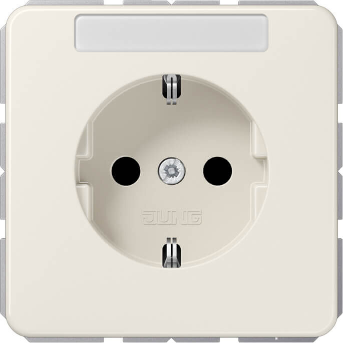 Schutzkontakt®-Steckdose, weiß mit Schriftfeld 6 x 37 mm mit Federklemmen für starre und unbehandelte flexible Leiter bis 2,5 mm2 Verbindungsklemmen nach DIN VDE 0620 (Schraubbefestigung, ohne Befestigungskrallen) Tragring ist über eine Erdungsschiene in die Schutzmaßnahme eingebunden. Ersatzteil: Transparente Abdeckung mit Einlage Art.-Nr.: CD 20 NA Material: Duroplast Maße (B x H): 67 x 67 mm