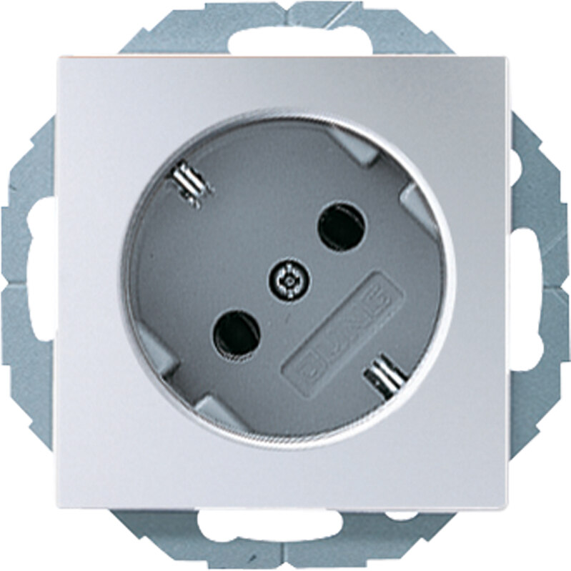 Schutzkontakt® Steckdose 45°, aluminium mit integriertem erhöhten Berührungsschutz (Safety Plus) mit Federklemmen für starre Leiter bis 2,5 mm2 Verbindungsklemmen nach DIN VDE 0620 besonders geeignet für vertikale Kombination mehrerer Steckdosen ohne "