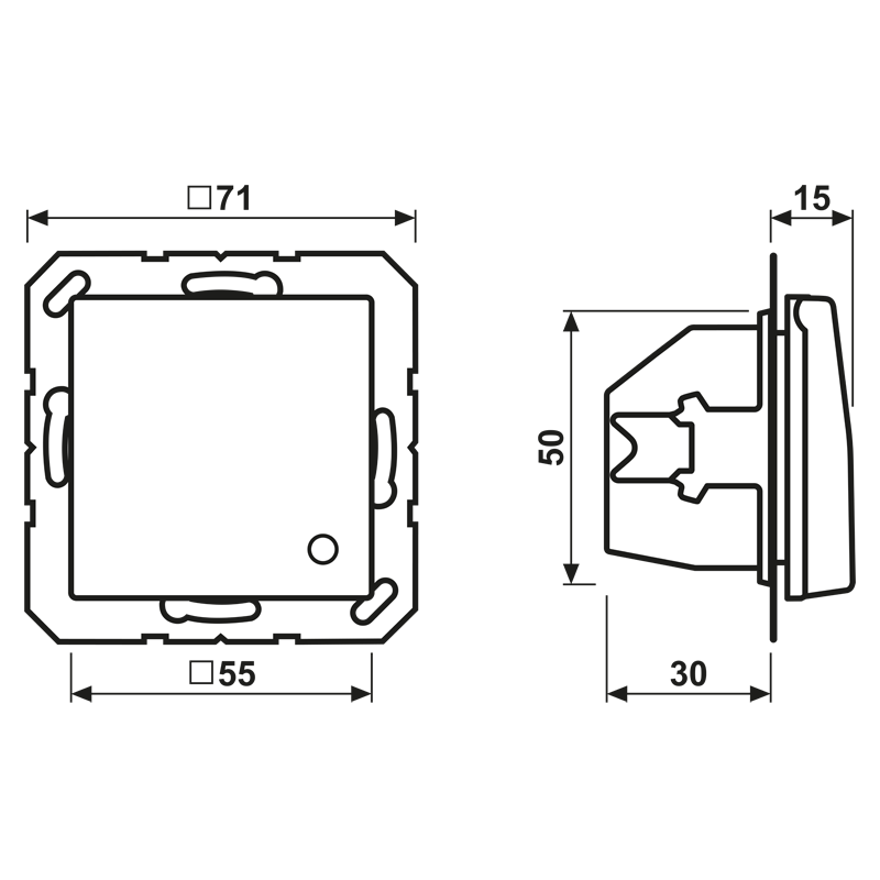 Schutzkontakt®-Steckdose, alpinweiß mit Klappdeckel (mit Rückstellfeder) mit Funktionsanzeige (grüne LED) Art.-Nr.: 193-LED GN (nach DIN VDE 0100 Teil 710.55.3) mit integriertem erhöhten Berührungsschutz (Safety Plus) mit Federklemmen für starre und unbehandelte flexible Leiter bis 2,5 mm2 Verbindungsklemmen nach DIN VDE 0620 Tragring, Krallen und Krallenschrauben sind über eine Erdungsschiene in die Schutzmaßnahme eingebunden. Funktionsanzeige ohne Spannungsunterbrechung von vorne austauschbar Material: Duroplast antimikrobiell Maße (B x H): 55 x 55 mm