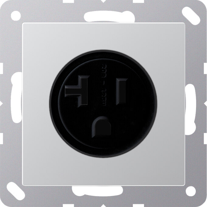 20 A, 125 V ~, 5-20R, 2-pol. + E mit Schraubklemmen für starre und flexible Leiter bis 4 mm2 nach US-NEMA Material: Thermoplast lackiert