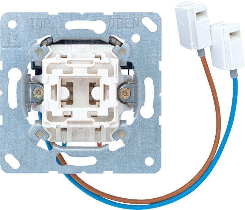 mit Federklemmen für starre Leiter bis 2,5 mm2 Verbindungsklemmen nach DIN VDE 0632 (EN 60669) mit integriertem LED-Modul Ausschließlich zur Verwendung mit Rahmen Art.-Nrn.: AS 581-1 BF INA.. und Beschriftungsfeldträger Art.-Nr.: AS 61 INA BT (Anwendung beleuchtetes Schriftfeld) Das LED-Modul ist auswechselbar. Anschluss erfolgt über 2 flexible Leitungen (braun/blau), ca. 220 mm lang. Anschluss direkt oder über externe Schalter an AC 230 V ~. Montagehinweis: tiefe Dose verwenden mit weißen LEDs