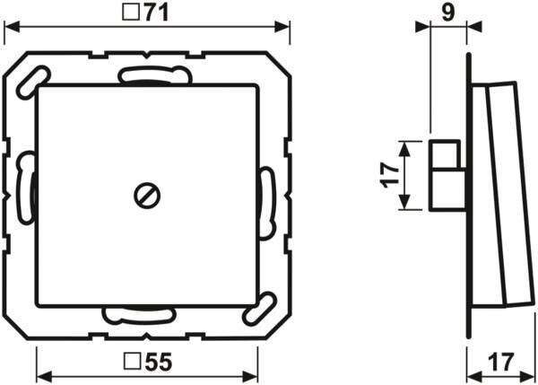 (kpl. mit Tragring, Schraubbefestigung) Öffnung für Leitungen mit max. 8 mm Ø Material: Thermoplast Maße (B x H): 55 x 55 mm