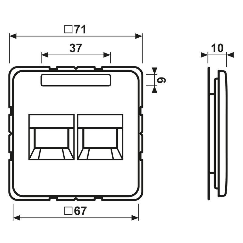 (kpl. mit Tragring, Schraubbefestigung) Innenmaß Keystone-Halterung 14,8 x 20,7 mm für Modular-Jack-Steckbuchsen TE Connectivity (Tyco Electronics / AMP NETCONNECT) für Kabel Ø max. 10 mm: EMT Cat. 5e, 180° Art.-Nr. 0-0188650-5 EMT Cat. 5e, 90° Art.-Nr. 0-0188650-6 für Kabel Ø max. 6,5 mm: EMT Cat. 5e, 180° Art.-Nr. 0-0338038-1 EMT Cat. 5e, 90° Art.-Nr. 0-0338038-2 Toolless Jack Cat. 3 ungeschirmt: Art.-Nr. 0-1116603-x Toolless Jack Cat. 5e ungeschirmt: Art.-Nr. 0-1116604-x, Toolless Jack Cat. 5e geschirmt: Art.-Nr. 0-1339015-1 Toolless Jack Cat. 6 ungeschirmt: Art.-Nr. 0-1116605-x, Toolless Jack Cat. 6 geschirmt: Art.-Nr. 0-1339016-1 MTRJ-LWL-Jack (Lichtwellenleiter): Art.-Nr. 1278414-1, tiefe Dose (mind. 62 mm) erforderlich für 2 Steckbuchsen Ersatzteil: Transparente Abdeckung mit Einlage Art.-Nr.: CD 20 NA
