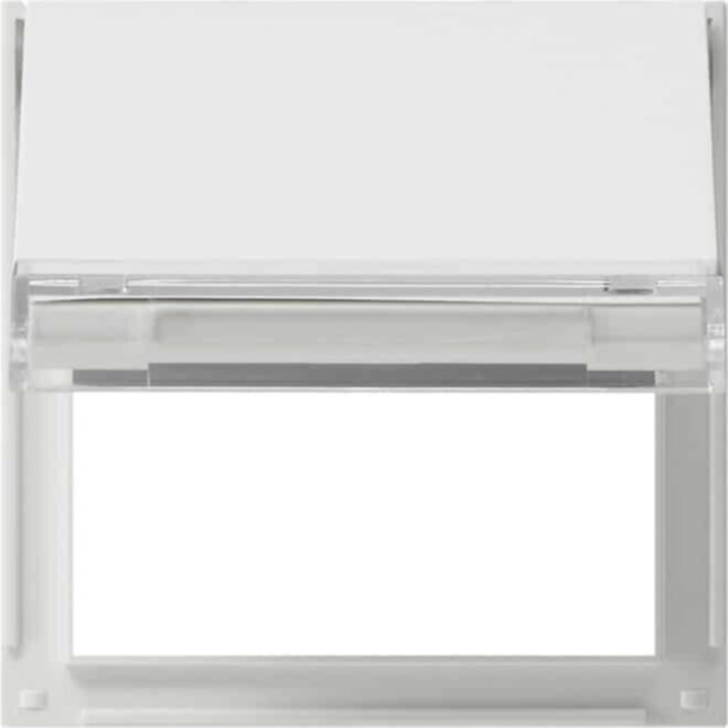 Adapterrahmen mit Klappdeckel und Beschriftungsfeld Reinweiß Merkmale: Zur Integration der Steckvorrichtungen aus dem System 55, wie z. B. TAE, UAE, Lautsprecher, SCHUKO-Steckdosen Shutter, SV, ZSV, WSV, etc. Hinweise : Passend für alle SCHUKO-Steckdosen aus dem System 55 gemäß Übersicht im Technischen Anhang. (Ausnahme: SCHUKO-Steckdose mit Klappdeckel, FI-Schutzsteckdose sowie weiteren Steckvorrichtungen aus dem System 55.)