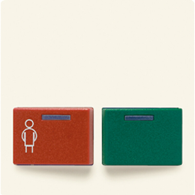 Ruf-/Abstelltaster mit Erinnerungs- und BeruhigungslampeRuftaste: rotAbstelltaste: grün Material: Thermoplast Maße (B x H): 55 x 55 mm
