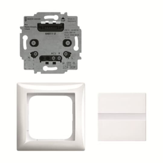 Einbaufertige Bewegungsmelder-Tastschalter-Kombination (Set-Verpackung). Bestehend aus Busch-Komfortschalter Bedienelement flex, 64765-914. Bestehend aus Relais-Einsatz flex, 1-fach 64811 U. Bestehend aus Busch-balance SI-Abdeckrahmen, 1-fach, 1721-914. Die Reichweitenangaben beziehen sich auf eine Umgebungstemperatur von 21 °C. Nur in Verbindung mit handelsüblichen UP-Gerätedosen nach DIN 49073 Teil 1 montieren. : Busch-balance SI : Busch-flexTronics