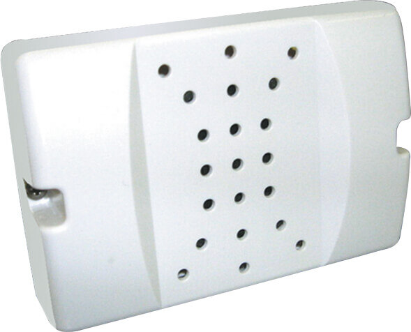 Zusatzgong zum wiedergeben des Ruftons. Anschluss an Innenstationen die mit den Klemmen S+ und S- ausgestattet sind, Aufputzmontage. Abmessungen: 110x75x29mm.