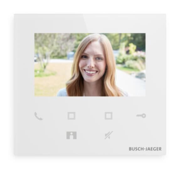 Darstellung des Videobildes der Außenstation. Während des Gesprächs kann ein Bild des Besuchers aufgenommen und im Bildspeicher abgelegt werden. Rufhistorie und Bildspeicher über die Welcome App erreichbar. Schnellzugriffstasten für Türöffnen, Stummschalten,Universalfunktionen (Licht oder Schaltaktor Funktion) und Überwachung. Ausgestattet mit einer Hörschleife zur Einkopplung des Audiosignals in Hörgeräte. Mit Freisprechfunktion. Freisprechlautstärke einstellbar. Lautstärke der Klingeltöne einstellbar. Mit integrierter WLAN Schnittstelle für die Anbindung an ein lokales WLAN Netz. Ermöglicht die Einbindung von Tablet oder Smartphone mit installierter Busch-free@home next APP oder Busch-Welcome App als mobile Innenstelle für Audio- und Videokommunikation. Es können jeweils bis zu 10 mobile Endgeräte verknüpft werden. Verbrauchseinheiten: 6.