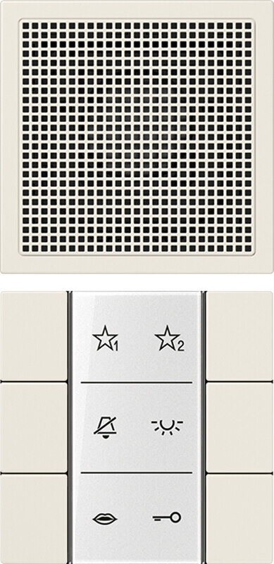 für die Serie LS inklusive Tastensatz und Beschriftungsfolie ohne Rahmen Die Module der Innenstation sind kombinierbar mit Mehrfachrahmen (waagerecht oder senkrecht). Eine abgesetzte Montage in separaten Rahmen sowie eine Montage in Aufputz-Kappen ist möglich. Produkteigenschaften Rufen, Sprechen, Türöffnen, Licht, Etagenruf, Schalt-/Steuerfunktionen und interne Kommunikation Verpolungssichere 2-Draht-Installation (J-Y(St)Y 2 x 2 x 0,8) Sprechentaste mit grüner Status-LED Licht-, Rufabschalt- und die beiden Funktionstasten frei konfigurierbar. Funktion der Tasten ohne Zusatzinstallation auslösbar, z.B. für Interntelefonie, Auslösung von Schalt-/Steuerfunktionen in Verbindung mit Siedle Bus-Schaltmodul BSM/BSE 650-.., gezielte Anwahl von Türlautsprechern (Außenstationen) Auf die Türöffnertaste kann eine Schaltfunktion (in Verbindung mit Siedle Bus-Schaltmodul BSM/BSE 650-..) per BPS konfiguriert werden. Mithörsperre integriert Parallelschaltung (gleichzeitiges Rufen) von max. 4 Audiomodulen bzw. Audio-Innenstationen (Ab dem 3. Gerät ist die Siedle BPS zur Programmierung erforderlich) Sprechverbindung jederzeit, auch ohne erfolgten Türruf, möglich Hochwertiger Klang und große Lautsprecherdynamik Elektret-Kondensatormikrofon Anschluss für Siedle In-Home-Bus Anschluss für Etagenruftaster Rufgenerator mit 11 Ruftonmelodien, inkl. Gong Ruftonlautstärke in 5 Stufen einstellbar bis zu 92 dB(A) Sprachlautstärke in 5 Stufen einstellbar Programmierung Manuell, Plug+Play und über Siedle Bus-Programmier-Software (BPS), nach Siedle Systemhandbuch Innenstation mit Freisprechen Statusanzeige bei aktiver Sprechverbindung Rufabschaltung mit Statusanzeige Rufunterscheidung für Etagenruf, 2 Türrufe und Internruf Türöffner-/Lichtfunktion jederzeit über Busleitung Türrufübernahme Gruppenbildung für Türrufe. Jede Innenstation kann bis zu 4 Gruppen am selben Strang angehören Intercom-Funktionen:- Rufweiterleitung- Interner Gruppenruf- Automatische Gesprächsannahme bei Internruf- Türmatik 5 LEDs zur Anzeige (z.B. Tür offen) ohne zusätzliche Verdrahtung Anzeige der Betriebsbereitschaft über eine LED Optische Rufanzeige durch Blinken der LED an der Sprechentaste Beschriftungsfeld Inklusive Beschriftungsfolien mit Symbolen für Audio und Video Inklusive Anschlusskabel Audio (rot, 220 mm)