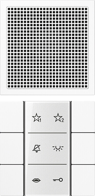 für die Serie LS inklusive Tastensatz und Beschriftungsfolie ohne Rahmen Die Module der Innenstation sind kombinierbar mit Mehrfachrahmen (waagerecht oder senkrecht). Eine abgesetzte Montage in separaten Rahmen sowie eine Montage in Aufputz-Kappen ist möglich. Produkteigenschaften Rufen, Sprechen, Türöffnen, Licht, Etagenruf, Schalt-/Steuerfunktionen und interne Kommunikation Verpolungssichere 2-Draht-Installation (J-Y(St)Y 2 x 2 x 0,8) Sprechentaste mit grüner Status-LED Licht-, Rufabschalt- und die beiden Funktionstasten frei konfigurierbar. Funktion der Tasten ohne Zusatzinstallation auslösbar, z.B. für Interntelefonie, Auslösung von Schalt-/Steuerfunktionen in Verbindung mit Siedle Bus-Schaltmodul BSM/BSE 650-.., gezielte Anwahl von Türlautsprechern (Außenstationen) Auf die Türöffnertaste kann eine Schaltfunktion (in Verbindung mit Siedle Bus-Schaltmodul BSM/BSE 650-..) per BPS konfiguriert werden. Mithörsperre integriert Parallelschaltung (gleichzeitiges Rufen) von max. 4 Audiomodulen bzw. Audio-Innenstationen (Ab dem 3. Gerät ist die Siedle BPS zur Programmierung erforderlich) Sprechverbindung jederzeit, auch ohne erfolgten Türruf, möglich Hochwertiger Klang und große Lautsprecherdynamik Elektret-Kondensatormikrofon Anschluss für Siedle In-Home-Bus Anschluss für Etagenruftaster Rufgenerator mit 11 Ruftonmelodien, inkl. Gong Ruftonlautstärke in 5 Stufen einstellbar bis zu 92 dB(A) Sprachlautstärke in 5 Stufen einstellbar Programmierung Manuell, Plug+Play und über Siedle Bus-Programmier-Software (BPS), nach Siedle Systemhandbuch Innenstation mit Freisprechen Statusanzeige bei aktiver Sprechverbindung Rufabschaltung mit Statusanzeige Rufunterscheidung für Etagenruf, 2 Türrufe und Internruf Türöffner-/Lichtfunktion jederzeit über Busleitung Türrufübernahme Gruppenbildung für Türrufe. Jede Innenstation kann bis zu 4 Gruppen am selben Strang angehören Intercom-Funktionen:- Rufweiterleitung- Interner Gruppenruf- Automatische Gesprächsannahme bei Internruf- Türmatik 5 LEDs zur Anzeige (z.B. Tür offen) ohne zusätzliche Verdrahtung Anzeige der Betriebsbereitschaft über eine LED Optische Rufanzeige durch Blinken der LED an der Sprechentaste Beschriftungsfeld Inklusive Beschriftungsfolien mit Symbolen für Audio und Video Inklusive Anschlusskabel Audio (rot, 220 mm)