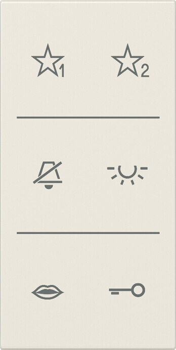 für die Serie LS mit Symbolen bedruckt zum Aufklipsen auf Audio-Innenstation (Art.-Nrn.: SI AI LS 6 .., SI AI AL 6 .., SI AI ES 6) bzw. Tastmodule (Art.-Nrn.: SI TM LS 5073, SI TM LS 5093) Maße: 33 x 70,5 mm