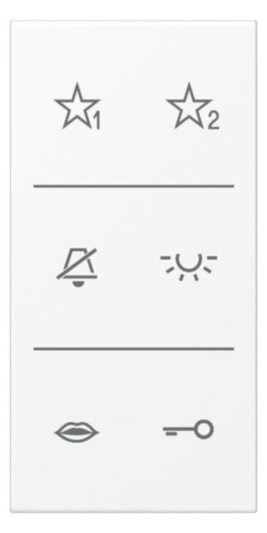 für die Serie LS mit Symbolen bedruckt zum Aufklipsen auf Audio-Innenstation (Art.-Nrn.: SI AI LS 6 .., SI AI AL 6 .., SI AI ES 6) bzw. Tastmodule (Art.-Nrn.: SI TM LS 5073, SI TM LS 5093) Maße: 33 x 70,5 mm