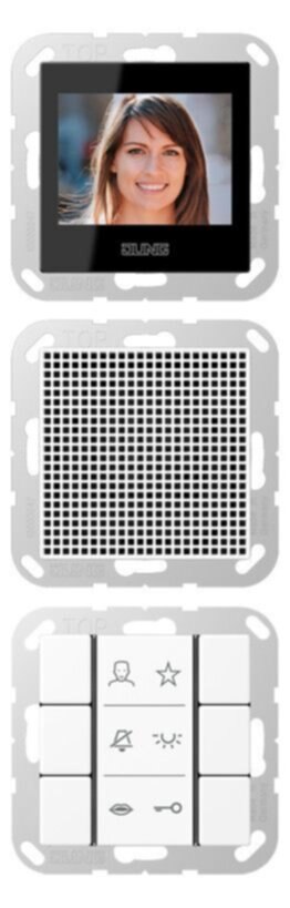 2-polige Zusatzversorgung notwendig (J-Y(St)Y 2 x 2 x 0,8) Automatische Videoaufschaltung bei Türruf Sprechentaste mit grüner Status-LED Licht-, Rufabschalt-, Monitor- und Funktionstaste frei konfigurierbar. Funktion der Tasten ohne Zusatzinstallation auslösbar, z.B. für Interntelefonie, Auslösung von Schalt-/Steuerfunktionen in Verbindung mit Siedle Bus-Schaltmodul BSM/BSE 650-.., gezielte Anwahl von Türlautsprechern (Außenstationen)/Kameras Auf die Türöffnertaste kann eine Schaltfunktion (in Verbindung mit Siedle Bus-Schaltmodul BSM/BSE 650-..) per BPS konfiguriert werden. Mithör- und Mitsehsperre integriert Parallelschaltung (gleichzeitiges Rufen) von max. 16 Video-Innenstationen (Ab dem 3. Gerät ist die Siedle BPS zur Programmierung erforderlich.) Sprech-/Videoverbindung jederzeit, auch ohne erfolgten Türruf, möglich Hochwertiger Klang und große Lautsprecherdynamik Elektret-Kondensatormikrofon Anschluss für Siedle In-Home-Bus Anschluss für Etagenruftaster Rufgenerator mit 11 Ruftonmelodien, inkl. Gong Ruftonlautstärke in 5 Stufen einstellbar bis zu 92 dB(A) Sprachlautstärke in 5 Stufen einstellbar Programmierung Manuell, Plug+Play und über Siedle Bus-Programmier-Software (BPS), nach Siedle Systemhandbuch Innenstation mit Freisprechen Statusanzeige bei aktiver Sprechverbindung Rufabschaltung mit Statusanzeige Rufunterscheidung für Etagenruf, 2 Türrufe und Internruf Türöffner-/Lichtfunktion jederzeit über Busleitung Türrufübernahme Gruppenbildung für Türrufe. Jede Innenstation kann bis zu 4 Gruppen am selben Strang angehören Intercom-Funktionen:- Rufweiterleitung- Interner Gruppenruf- Sammeldurchsage- Automatische Gesprächsannahme bei Internruf- Türmatik 5 LEDs zur Anzeige (z.B. Tür offen) ohne zusätzliche Verdrahtung Anzeige der Betriebsbereitschaft über eine LED Optische Rufanzeige durch Blinken der LED an der Sprechentaste Beleuchtbares Beschriftungsfeld Inklusive Beschriftungsfolien mit Symbolen für Audio und Video Inklusive Anschlusskabel Audio (rot, 220 mm) Anschluss für Zusatzversorgung (Wird benötigt für den Betrieb eines Videomoduls, die Beleuchtung des Beschriftungsfelds im Tastmodul Universal und bei Anschluss eines zweiten Tastmoduls.) Anschluss für ein weiteres Tastmodul (Standard oder Universal, max. 2 Tastmodule pro Innenstation)