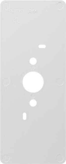 Montageadapterplatte für Wohnungsstation AP Reinweiß glänzend Merkmale: Montageadapterplatte zum Abdecken des Tapetenausschnitts einer bauseits vorhandenen Wohnungsstation bei der Nachrüstung des Gira Türkommunikations-Systems. In der Montageadapterplatte befinden sich Bohrungen zur Montage der Wohnungsstationen AP.