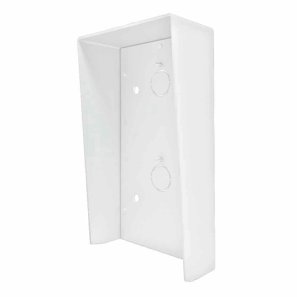 Regendach fu?r Ultra Aufputzgehäuse, 4 Module, weiss. Die Ultra Türstation wird inkl. Auputzgehäuse in die Regenschutzabdeckung montiert. Abmessungen: 116x385x57mm.