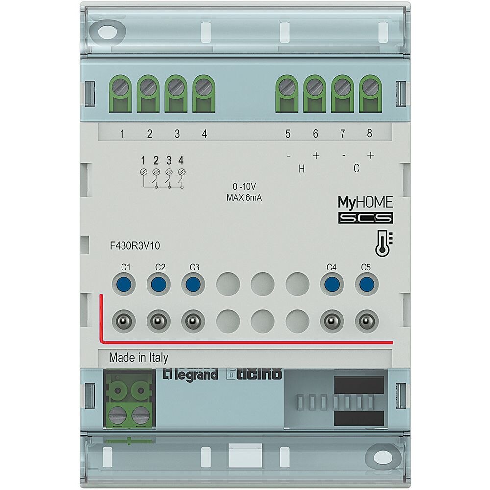 Reiheneinbau-Aktor zur Steuerung von Fan-Coils mit 3 Schaltkontakten und 2 Ausgängen 0-10 V, 4 Teilungseinheiten
