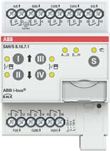Der 16A Combi-Aktor besitzt 8 unabhängige Schaltrelais mit denen individuell elektrische Verbraucher oder paarweise 230V AC Jalousien über ABB i-bus® geschaltet werden können.