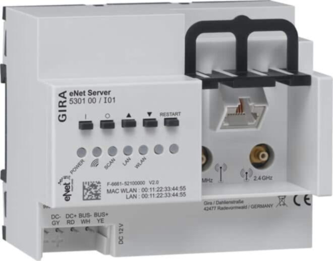eNet Server REG Merkmale: Visualisierungsserver eNet SMART HOME. Visualisierung für iOS und Android Smartphones. Visualisierung für iOS und Android Tablets. Visualisierung für Gira G1 mit Türkommunikation und Wetterservice. Visualisierungsfunktionen (Schalten, Dimmen, DALI, Tasten, Jalousie-, Rollläden-, Markiesensteuerung, tado-Heizungsregelung, Szenen, Statusanzeige, Favoriten, Benachrichtigungen). Kompatibel zur smarten Heizungssteuerung von tado. Sprachsteuerung mittels Amazon Alexa und Google Assistant. Kompatibel mit IoT-Plattform Conrad Connect Professional. Einfaches anlegen und Konfiguration von bis zu 34 Szenen mit bis zu 100 Aktionen über die Visualisierung. Einfaches anlegen und Konfiguration von bis zu 100 Zeitschaltuhren mit bis zu 100 Aktionen über die Visualisierung. Einfaches anlegen und Konfiguration von bis zu 32 Wenn-Dann-regeln mit bis zu 32 Bedingungen, Aktionen, Später-Aktionen über die Visualisierung. Gleichzeitiger Zugriff von bis zu 8 Visualisierungsgeräten (Smartphone, Tablet, G1 oder Windows(r) PC). Bis zu 10 verschiedene Benutzerkonten anlegen. Einfaches Benutzermanagement über eNet SMART HOME Visualisierung. Visualisierung von Energiesensoren. Import Export von Projektdateien. Einfacher Projektabgleich über eNet SMART HOME connect. Update und Konfiguration von eNet SMART HOME Geräten. Integrierte Telegrammaufzeichnung zur Diagnose. Automatisch generierte Projektdokumentation. Funksender und Funkempfänger für max. 32 eNet Funk Reiheneinbaugeräte (kein eNet Funk Empfangsmodul REG erforderlich). Interne eNet Funkantenne und WLAN-Antenne. Externe eNet Funkantennen und WLAN-Antennen anschließbar. Hohe Sicherheit: Vollverschlüsselte Funkübertragung (AES-CCM 128 bit) verhindert das Mitlesen durch Dritte. Vollverschlüsselter Fernzugriff über My-eNet-Portal (my.enet-smarthome.com) für IPv4 und IPv6 verhindert das Mitlesen durch Dritte. Vollverschlüsselte Fernwartung über My-eNet-Portal (my.enet-smarthome.com) verhindert das Mitlesen durch Dritte Hinweise : Die Installation des eNet Servers ist möglichst an einem zentralen Ort (z. B. Erdgeschoss) vorzunehmen, um eine gute Empfangsqualität zu gewährleisten. Beim Einbau in Verteilerschrank bzw. Unterverteilung mit Metallgehäuse ist eine Zusatzantenne erforderlich. Die Zusatzantenne ist außerhalb des Metallgehäuses zu platzieren. Die Inbetriebnahme des Servers erfolgt mit dem Web-Interface eNet SMART HOME connect. Für die Inbetriebnahme über das Web-Interface muss der Inbetriebnahme-Computer über einen aktuellen Browser (z. B. Mozilla Firefox, Microsoft Internet Explorer, Edge, Safari, Chrome) verfügen. Zur Spannungsversorgung im Verteilerschrank wird die Spannungsversorgung benötigt. Nicht kompatible zum Gira Funk-Bussystem.
