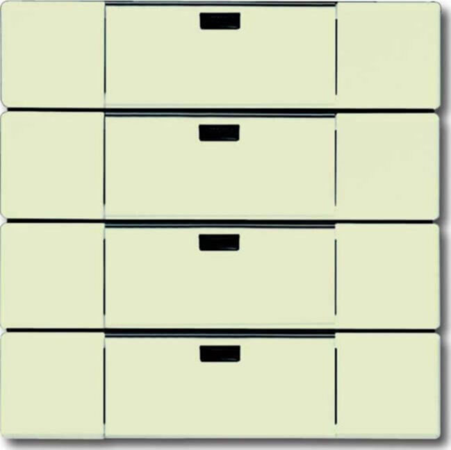 Netzunabhängiger 4-fach Wandsender. Mit Beschriftungsfeld und Beschriftungsschild. Zum Schalten und Dimmen. Zur Jalousie- und zur Lichtszenensteuerung. Es können 4 Funkkanäle bedient oder bis zu 8 Lichtszenen aufgerufen werden. Für WaveLINE UP-Aktoren 6701-101, 6702, 6703, 6704 und 6705-101. Sendefrequenz: 868 MHz. Reichweite: ca. 100 m (Freifeld). Spannungsversorgung: Lithium-Knopfzelle Typ CR2032. Batterielebensdauer: typ. 5 Jahre, dadurch praktisch wartungsfrei. Automatische Überwachung der Batterielebensdauer. Inkl. Befestigungsplatte zur Montage auf glatten Wänden oder auf Schalterdosen. Bedienelemente: Tastkontakte links/rechts Anzeigeelemente: Statusanzeige der Sendestufe über LED Nennspannung: 3 V- Schutzart Gerät: IP 20 Temperaturbereich Gerät: -5 °C - 45 °C Maße (H x B x T): 63 mm x 63 mm x 16 mm Batterie im Lieferumfang enthalten. : Plattform 63, future linear, solo , carat , Busch-dynasty : future , future linear : WaveLINE