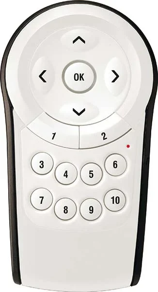 10-Kanal IR-Fernbedienung. Zur Ansteuerung aller TELE-Sensorflächen, Jalousie-Taster mit IR-Empfänger, Präsenzmelder mit IR-Empfänger und KNX-Geräte mit IR-Empfänger. Batterie 2 Microzellen (IEC LR 03, AAA). Reichweite bis zu 12 m. Lieferumfang Ohne Batterie. Farbe weiß/schwarz.
