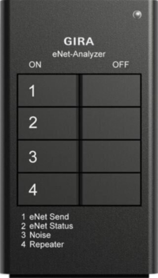 eNet Funk Diagnosegerät - Anzeige der Signalqualität von ausgewählten eNet Geräten und Statusmeldungen mittels LED. - Anzeige von Funksignalen von nicht eNet Funksendern. - Ein-, Ausschalten der Repeaterfunktion von netzbetriebenen Aktoren, Sendern und Energiesensoren. Batterien sind Verbrauchsgüter und müssen regelmäßig ersetzt werden. Bitte beachten Sie die Vorschriften zur Entsorgung von gebrauchten Batterien. Diagnose ist nur bei inaktiver Funkverschlüsselung (AES CCM 128) möglich. Die Funkverschlüsselung wird über den eNet Server Version 2.0 aktiviert bzw. deaktiviert. Batterien sind im Lieferumfang enthalten.