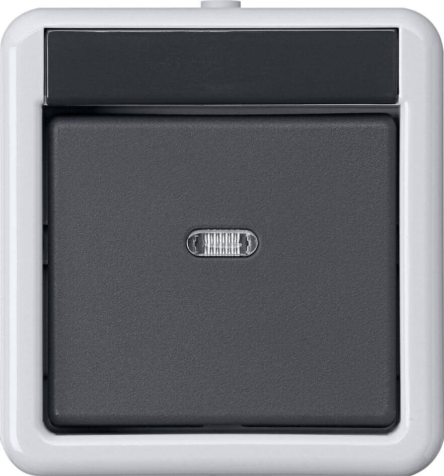 KNX Taster-Busankoppler WG AP 1fach mit Kontrollfenster und 2-Punkt-Bedienung Grau Der Taster-Busankoppler ist die Schnittstelle zwischen dem KNX System und dem Anwender. Merkmale: Tastenfunktion: Schalten, Dimmen, Jalousie, Wertgeber 1 Byte und Szenennebenstelle. Funktion Schalten: Befehl beim Drücken und Loslassen der Tasten parametrierbar (EIN, AUS, UM, keine Reaktion). Funktion Dimmen: Befehl beim Drücken der Tasten parametrierbar (Heller-EIN, Dunkler-AUS, Heller- bzw. Dunkler-UM, Heller-UM, Dunkler-UM, keine Reaktion). Funktion Jalousie: Befehl beim Drücken der Tasten parametrierbar (AUF, AB, keine Reaktion). Funktion Wertgeber 1 Byte: Funktionsweise konfigurierbar. Funktion Szenennebenstelle: Funktionsweise konfigurierbar (mit oder ohne Speicherfunktion bei langem Tastendruck). Bei 2-Punkt-Bedienung (gerade stehende Wippe) kann die Wippe beidseitig (z. B. oben unten) bedient werden. Taster-Busankoppler im System Wassergeschützt Aufputz (IP44). Funktionen der Status-LED: Rote LED kann wahlweise zur Orientierungsbeleuchtung, Betätigungsanzeige oder Statusanzeige dienen. Bedienkonzepte Wippen- oder Tastenfunktion einstellbar. Wippenfunktion: Schalten, Dimmen und Jalousie. Befehl bei Wippenbetätigung oben und unten parametrierbar (EIN, AUS, UM, keine Reaktion). Befehl bei Wippenbetätigung oben und unten parametrierbar (Heller-EIN, Dunkler-AUS, Heller Dunkler-UM, Heller-UM, Dunkler-UM, keine Reaktion). Befehl bei Wippenbetätigung parametrierbar (Wippe oben: AUF Wippe unten: AB, Wippe oben: AB Wippe unten: AUF).