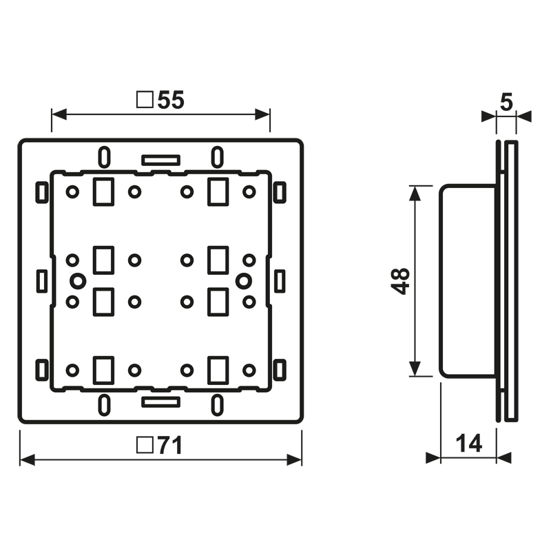 Montage in Gerätedose mit Abmessungen nach DIN 49073