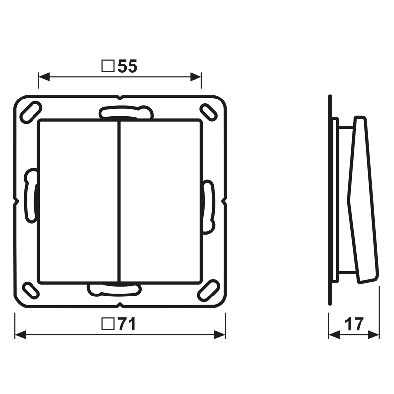4-kanalig inklusive Montageplatte, Klebefolie und Befestigungsschrauben Smarter Lichtschalter zum drahtlosen Fernsteuern von Geräten über den Funkstandard Bluetooth® Low Energy (BLE) Zum Schalten, Dimmen und Ansteuern von individuellen Lichtszenen Montage auf Gerätedose mit Abmessungen nach DIN 49073, Schraubbefestigung auf Wänden oder Klebemontage auf glatten Flächen (Glasscheiben) Batterieloses Gerät ohne externe Spannungsversorgung Sendeenergie wird aus mechanischer Energie bei Betätigung erzeugt (Energy Harvesting) Verschlüsselte Übertragung mit AES-128 (CBC Mode) und Sequence Counter Kompatibel zu den drahtlosen Bluetooth®-Systemen: Casambi, XICATO Controls, Häfele Connect, WiSilica, Wirepas, Blu2Light (Vossloh Schwabe), Aruba, Fulham, Helvar Konfigurationsschnittstelle: NFC Forum Type 2 Tag (ISO/IEC 14443 Part 2 + 3) Reichweitenverlängerung je nach System automatisch über netzversorgte BT-Mesh-Geräte Funkfrequenz: 2,402 ... 2,480 GHz Sendereichweite im Freifeld: bis 75 m in Gebäuden: ca. 15 m Sendeleistung: 4 dBm / 2,5 mW Umgebungstemperatur: -5 ... +45 °C Lager-/Transporttemperatur: -25 ... +65 °C Luftfeuchte: 0 ... 95 % (keine Betauung)
