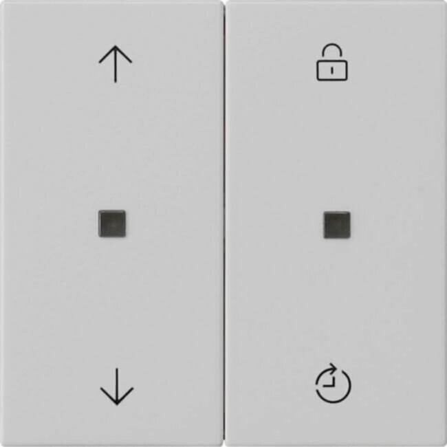 eNet Funk Bedienaufsatz Memory Pfeilsymbole Grau matt Merkmale: Betrieb auf Schalt-, Dimm- oder Jalousieeinsatz oder Nebenstelleneinsatz 3-Draht des System 3000. Manuelles, funk- und zeitgesteuertes Bedienen von z. B. Jalousien, Rollläden, Markisen, Beleuchtung oder Lüftern. Sender zur Funkübertragung von Schalt-, Dimm- und Jalousiebefehlen. Nachtmodus einstellbar. Status- und Funktions-LED leuchten nicht dauerhaft. Statusrückmeldung an Funksender. Statusanzeige mit LED. Auswertung der Nebenstelleneingänge. Funktionen in Kombination mit Jalousieeinsatz:: Positionierung von Behängen über Szenenaufruf. Position für Sonnenschutz und Dämmerung. Laufzeit und Lüftungsposition des Behanges speicherbar. Funktionen in Kombination mit Lichteinsatz:: Szenenbetrieb möglich. Einschalthelligkeit dauerhaft speicherbar bei Kombination mit Dimmeinsatz. Funktionen in Kombination mit 3-Draht-Nebenstelle:: Spannungsversorgter eNet Sender. Steuerung von Beleuchtung. Steuerung von Beschattung. Mit eNet Server ab Version 2.3 einstellbar (abhängig vom Einsatz):: Vollverschlüsselte Funkübertragung (AES-CCM). Nebenstellenauswertung deaktivieren. Bediensperren. Umsteuerzeit bei Jalousien, Rollläden und Markisen einstellbar. Laufrichtung invertierbar. Position für Sonnenschutz, Dämmerung, Aussperrschutz und Windalarm. Maximalhelligkeit, Minimalhelligkeit und Dimmgeschwindigkeit einstellbar. Funktion der Status-LED einstellbar als Status-LED Betätigungsanzeige. Nachlaufzeit. Ein- bzw. Ausschaltverzögerung. Auf- bzw. Abdimmrampe. Abschaltvorwarnung. Dauer-Ein, Dauer-Aus. Hotelfunktion. Lichtregelung. Repeaterfunktion. Update der Gerätesoftware. Speichern einer Auf- und Abfahrtzeit bzw. einer Ein- und Ausschaltzeit. Im Memorybetrieb werden diese Schaltzeiten im 24-Stunden-Rhythmus wiederholt. Sperrfunktion sperrt die Nebenstellenbedienung, die Bedienung über Funk und deaktiviert den Memorybetrieb. Hinweise : Bei Verwendung eines Aufsatzes aus Metall und oder eines Abdeckrahmen aus Metall kann es zu Reichweiteneinbußen kommen. Die Funkzulassung gilt für Staaten der EU und EFTA.
