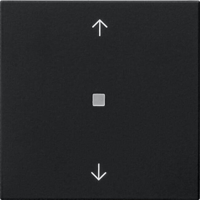 KNX RF Bedienaufsatz 1fach Pfeilsymbole System 55 Schwarz matt KNX RF ¿ das standardisierte Funksystem für die Nachrüstung basierend auf 230 V. Merkmale: KNX RF Bedienaufsatz zur Steuerung von System 3000 Einsätzen sowie entfernten KNX Geräten mittels KNX RF. Wippen- oder Tastenfunktion für jede Bedienfläche einstellbar. Steuerung von bis zu vier Funktionen über die Tastenfunktion des KNX RF Bedienaufsatzes möglich. KNX RF Aktor in Verbindung mit den System 3000 Einsätzen. Betrieb auf Schalt-, Dimm-, Jalousie- oder Raumtemperaturregler-Einsatz sowie Nebenstelleneinsatz 3-Draht des System 3000. Integrierter Temperatursensor. Raumtemperaturmessung: Der RF Bedienaufsatz verfügt über einen geräteinternen Temperatursensor, wodurch das Messen und Weiterleiten der lokalen Raumtemperatur möglich ist. Temperaturmessungen sind nur in Kombination mit den folgenden Einsätzen möglich: Best.-Nr. 5403 00, Best.-Nr. 5405 00, Best.-Nr. 5406 00, Best.-Nr. 5414 00, Best.-Nr. 5415 00, Best.-Nr. 5395 00, Best.-Nr. 5409 00. Bedienfunktionen sind abhängig vom verwendeten Unterputz-Einsatz: Der RF Bedienaufsatz kann mit der System 3000 3-Draht-Nebenstelle als 230-V versorgtes KNX RF Bediengerät betrieben werden. Bedienkonzept Tasten- oder Wippenfunktion ist parametrierbar. Schalten, Dimmen und Farbtemperatur, Farbsteuerung und Helligkeit, Jalousie, Wertgeber, Szenennebenstelle, 2-Kanal Bedienung und Reglernebenstelle. Schalten: Der Befehl beim Drücken und oder Loslassen ist einstellbar (Keine Reaktion, Einschalten, Ausschalten, Umschalten). Dimmen und Farbtemperatur: Helligkeit und oder Farbtemperatur, der Befehl beim Drücken, die Zeit zwischen Schalten und Dimmen, das Dimmen in verschiedenen Stufen, die Telegrammwiederholung bei langer Betätigung und das Senden eines Stopptelegramms bei Ende der Betätigung ist einstellbar. Farbsteuerung und Helligkeit: Farbkreisdurchlauf oder Helligkeitsverstellung, der Befehl beim Drücken, die Zeit zwischen Schalten und Dimmen, der Startwert, die Schrittweite und die Zeit zwischen zwei Telegrammen ist einstellbar. Jalousie: Der Befehl beim Drücken und das Bedienkonzept ist einstellbar. Das Bedienkonzept kann in den Zeiten für kurze und lange Betätigung und Lamellenverstellung angepasst werden. Wertgeber: Die Funktionsweise (1 Byte, 2 Byte, 3 Byte oder 6 Byte Wertgeber) und der Wert ist einstellbar. Szenennebenstelle: Die Funktionsweise (ohne oder mit Speicherfunktion) und die Szenennummer ist einstellbar. 2-Kanal-Bedienung: Durch einen Tastendruck können bis zu zwei Telegramme auf den KNX ausgesendet werden. Das Bedienkonzept kann eingestellt und die Zeit für kurze und lange Betätigung angepasst werden. Die Funktionsweise der Kanäle ist getrennt voneinander einstellbar. Reglernebenstelle: Die Funktionsweise (Betriebsmodusumschaltung, Zwang-Betriebsmodusumschaltung, Präsenzfunktion und Sollwertverschiebung) ist einstellbar. Sperrfunktion zum Sperren von einzelnen Tasten bzw. Wippen. Reglernebenstellen-Eigenschaften: Die Reglernebenstelle ist als Funktion einer Wippe bzw. Taste parametrierbar. Steuerung eines Raumtemperaturreglers (Betriebsmodi, Präsenzfunktion und Sollwertverschiebung). Auswertung des Reglerzustandes uber die Status-LED. Temperaturmessung ist aktivierbar. Messung der Raumtemperatur mit internem Fühler oder optional durch eine Messwertbildung der intern gemessenen Temperatur mit einer externen Temperatur. Funktionen der Status-LED: Die Funktionsauswahl erfolgt je Status-LED. Folgenden Funktionen parametrierbar: immer AUS, immer EIN, Betätigungsanzeige, Telegrammquittierung, Statusanzeige, Ansteuerung über separates LED-Objekt, Betriebsmodusanzeige, Anzeige Reglerstatus, Anzeige Präsenzstatus, Anzeige Sollwertverschiebung. Farbe ist parametrierbar. Die Farbauswahl erfolgt entweder gemeinsam für alle Status-LED oder getrennt für jede Status-LED des Gerätes. Die Status-LED können wahlweise rot, grün oder blau leuchten. Die Helligkeit der Status-LED ist in sechs Stufen einstellbar. Mit der Nachtabsenkung