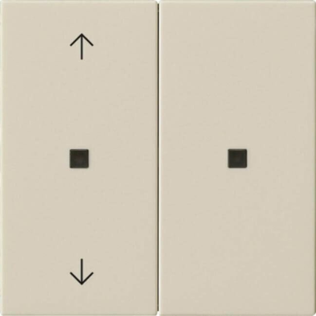 KNX RF Bedienaufsatz 2fach Pfeilsymbole System 55 Cremeweiß glänzend KNX RF ¿ das standardisierte Funksystem für die Nachrüstung basierend auf 230 V. Merkmale: KNX RF Bedienaufsatz zur Steuerung von System 3000 Einsätzen sowie entfernten KNX Geräten mittels KNX RF. Wippen- oder Tastenfunktion für jede Bedienfläche einstellbar. Steuerung von bis zu vier Funktionen über die Tastenfunktion des KNX RF Bedienaufsatzes möglich. KNX RF Aktor in Verbindung mit den System 3000 Einsätzen. Betrieb auf Schalt-, Dimm-, Jalousie- oder Raumtemperaturregler-Einsatz sowie Nebenstelleneinsatz 3-Draht des System 3000. Integrierter Temperatursensor. Raumtemperaturmessung: Der RF Bedienaufsatz verfügt über einen geräteinternen Temperatursensor, wodurch das Messen und Weiterleiten der lokalen Raumtemperatur möglich ist. Temperaturmessungen sind nur in Kombination mit den folgenden Einsätzen möglich: Best.-Nr. 5403 00, Best.-Nr. 5405 00, Best.-Nr. 5406 00, Best.-Nr. 5414 00, Best.-Nr. 5415 00, Best.-Nr. 5395 00, Best.-Nr. 5409 00. Bedienfunktionen sind abhängig vom verwendeten Unterputz-Einsatz: Der RF Bedienaufsatz kann mit der System 3000 3-Draht-Nebenstelle als 230-V versorgtes KNX RF Bediengerät betrieben werden. Bedienkonzept Tasten- oder Wippenfunktion ist parametrierbar. Schalten, Dimmen und Farbtemperatur, Farbsteuerung und Helligkeit, Jalousie, Wertgeber, Szenennebenstelle, 2-Kanal Bedienung und Reglernebenstelle. Schalten: Der Befehl beim Drücken und oder Loslassen ist einstellbar (Keine Reaktion, Einschalten, Ausschalten, Umschalten). Dimmen und Farbtemperatur: Helligkeit und oder Farbtemperatur, der Befehl beim Drücken, die Zeit zwischen Schalten und Dimmen, das Dimmen in verschiedenen Stufen, die Telegrammwiederholung bei langer Betätigung und das Senden eines Stopptelegramms bei Ende der Betätigung ist einstellbar. Farbsteuerung und Helligkeit: Farbkreisdurchlauf oder Helligkeitsverstellung, der Befehl beim Drücken, die Zeit zwischen Schalten und Dimmen, der Startwert, die Schrittweite und die Zeit zwischen zwei Telegrammen ist einstellbar. Jalousie: Der Befehl beim Drücken und das Bedienkonzept ist einstellbar. Das Bedienkonzept kann in den Zeiten für kurze und lange Betätigung und Lamellenverstellung angepasst werden. Wertgeber: Die Funktionsweise (1 Byte, 2 Byte, 3 Byte oder 6 Byte Wertgeber) und der Wert ist einstellbar. Szenennebenstelle: Die Funktionsweise (ohne oder mit Speicherfunktion) und die Szenennummer ist einstellbar. 2-Kanal-Bedienung: Durch einen Tastendruck können bis zu zwei Telegramme auf den KNX ausgesendet werden. Das Bedienkonzept kann eingestellt und die Zeit für kurze und lange Betätigung angepasst werden. Die Funktionsweise der Kanäle ist getrennt voneinander einstellbar. Reglernebenstelle: Die Funktionsweise (Betriebsmodusumschaltung, Zwang-Betriebsmodusumschaltung, Präsenzfunktion und Sollwertverschiebung) ist einstellbar. Sperrfunktion zum Sperren von einzelnen Tasten bzw. Wippen. Reglernebenstellen-Eigenschaften: Die Reglernebenstelle ist als Funktion einer Wippe bzw. Taste parametrierbar. Steuerung eines Raumtemperaturreglers (Betriebsmodi, Präsenzfunktion und Sollwertverschiebung). Auswertung des Reglerzustandes uber die Status-LED. Temperaturmessung ist aktivierbar. Messung der Raumtemperatur mit internem Fühler oder optional durch eine Messwertbildung der intern gemessenen Temperatur mit einer externen Temperatur. Funktionen der Status-LED: Die Funktionsauswahl erfolgt je Status-LED. Folgenden Funktionen parametrierbar: immer AUS, immer EIN, Betätigungsanzeige, Telegrammquittierung, Statusanzeige, Ansteuerung über separates LED-Objekt, Betriebsmodusanzeige, Anzeige Reglerstatus, Anzeige Präsenzstatus, Anzeige Sollwertverschiebung. Farbe ist parametrierbar. Die Farbauswahl erfolgt entweder gemeinsam für alle Status-LED oder getrennt für jede Status-LED des Gerätes. Die Status-LED können wahlweise rot, grün oder blau leuchten. Die Helligkeit der Status-LED ist in sechs Stufen einstellbar. Mit der Nachtabs