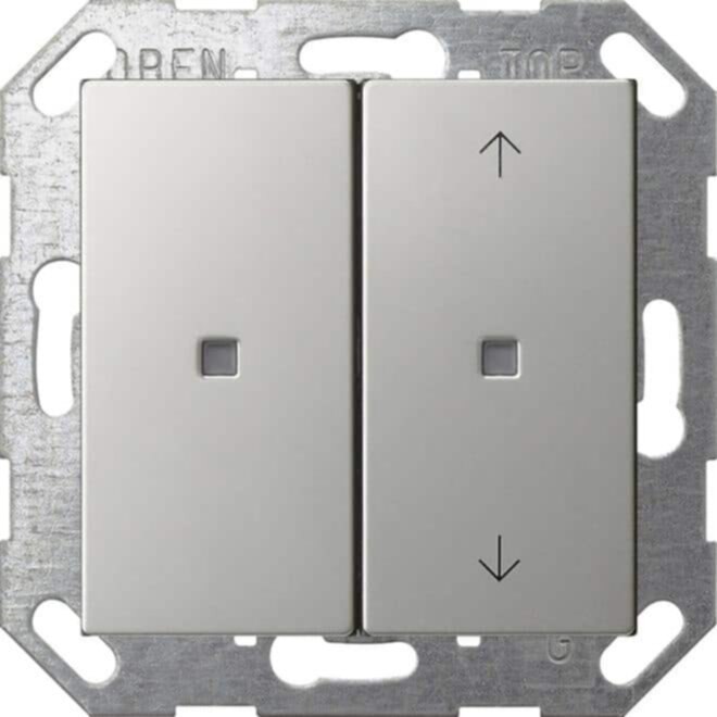 KNX Taster, Wippe 2fach unbedruckt Pfeilsymbole System 55 Edelstahl Merkmale: KNX Taster mit integriertem Busankoppler. Integrierter Temperatursensor. Wippen- oder Tastenfunktion für jede Bedienfläche einstellbar. Steuerung von bis zu vier Funktionen über die Tastenfunktion des KNX Tasters möglich. Bedienfunktionen: Bedienkonzept Tasten- oder Wippenfunktion ist parametrierbar. Schalten, Dimmen und Farbtemperatur, Farbsteuerung und Helligkeit, Jalousie, Wertgeber, Szenennebenstelle, 2-Kanal-Bedienung und Reglernebenstelle. Schalten: Der Befehl beim Drücken und oder Loslassen ist einstellbar (Keine Reaktion, Einschalten, Ausschalten, Umschalten). Dimmen und Farbtemperatur: Helligkeit und oder Farbtemperatur, der Befehl beim Drücken, die Zeit zwischen Schalten und Dimmen, das Dimmen in verschiedenen Stufen, die Telegrammwiederholung bei langer Betätigung und das Senden eines Stopptelegramms bei Ende der Betätigung ist einstellbar. Farbsteuerung und Helligkeit: Farbkreisdurchlauf oder Helligkeitsverstellung, der Befehl beim Drücken, die Zeit zwischen Schalten und Dimmen, der Startwert, die Schrittweite und die Zeit zwischen zwei Telegrammen ist einstellbar. Jalousie: Der Befehl beim Drücken und das Bedienkonzept ist einstellbar. Das Bedienkonzept kann in den Zeiten für kurze und lange Betätigung und Lamellenverstellung angepasst werden. Wertgeber: Die Funktionsweise (1 Byte, 2 Byte, 3 Byte oder 6 Byte Wertgeber) und der Wert ist einstellbar. Szenennebenstelle: Die Funktionsweise (ohne oder mit Speicherfunktion) und die Szenennummer ist einstellbar. 2-Kanal-Bedienung: Durch einen Tastendruck können bis zu zwei Telegramme auf den KNX ausgesendet werden. Das Bedienkonzept kann eingestellt und die Zeit für kurze und lange Betätigung angepasst werden. Die Funktionsweise der Kanäle ist getrennt voneinander einstellbar. Reglernebenstelle: Die Funktionsweise (Betriebsmodusumschaltung, Zwang-Betriebsmodusumschaltung, Präsenzfunktion und Sollwertverschiebung) ist einstellbar. Sperrfunktion zum Sperren von einzelnen Tasten bzw. Wippen. Reglernebenstellen-Eigenschaften: Die Reglernebenstelle ist als Funktion einer Wippe bzw. Taste parametrierbar. Steuerung eines Raumtemperaturreglers (Betriebsmodi, Präsenzfunktion und Sollwertverschiebung). Auswertung des Reglerzustandes über die Status-LED. Temperaturmessung ist aktivierbar. Messung der Raumtemperatur mit internen Fühler oder optional durch eine Messwertbildung der intern gemessenen Temperatur mit einer externen Temperatur. Funktionen der Status-LED: Die Funktionsauswahl erfolgt je Status-LED. Folgende Funktionen sind parametrierbar: immer AUS, immer EIN, Betätigungsanzeige, Telegrammquittierung, Statusanzeige, Ansteuerung über separates LED-Objekt, Betriebsmodusanzeige, Anzeige Reglerstatus, Anzeige Präsenzstatus und Anzeige Sollwertverschiebung. Farbe ist parametrierbar. Die Farbauswahl erfolgt entweder gemeinsam für alle Status-LED oder getrennt für jede Status-LED des Gerätes. Die Status-LED können wahlweise rot, grün oder blau leuchten. Die Helligkeit der Status-LED ist in fünf Stufen einstellbar. Mit der Nachtabsenkung kann die Helligkeit der Status-LED in den Nachtstunden über Kommunikationsobjekt reduziert werden. Hinweise : KNX Data Secure kompatibel. Firmware-Updates sind mit der Gira ETS Service-App (Zusatzsoftware) möglich. Bei Verwendung von Gira TX_44, Adapterrahmen IP20 und Abdeckung aus dem System 55 verwenden. Die Wippen sind optional gegen alternative Varianten austauschbar.